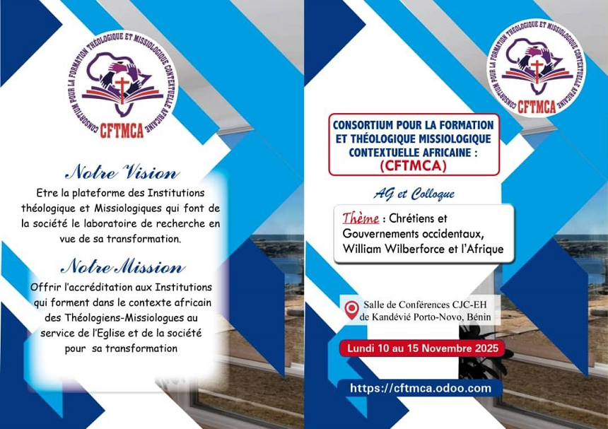 Certains d’entre vous étaient déjà informés de la tenue des rencontres du Consortium pour la Formation Théologique et Missiologique Contextuelle Africaine (CFTMCA) à Porto-Novo du 10 au 15 novembre 2025.